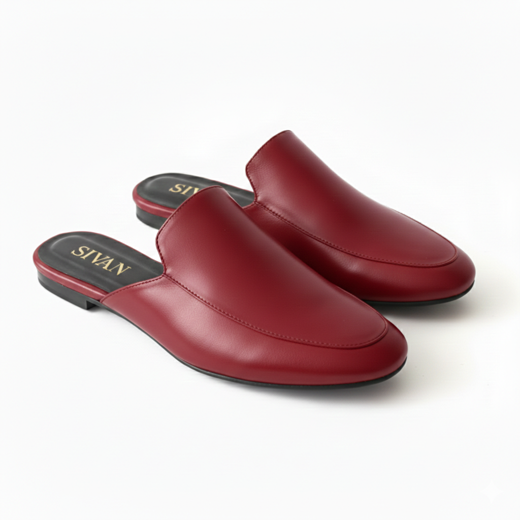 Elevate your wardrobe with the Amara Leather Mule. Crafted with premium Red Cherry leather, this sleek silhouette features a full leather construction for a sophisticated look and a comfortable, breathable fit. Finished with our Sivan gold logo and a high-performance outsole for daily versatility.